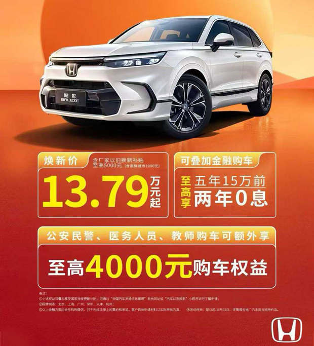 本田皓影苏州优惠5万起 部分现车在售