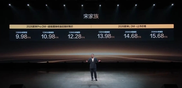 10月23日,2026款宋Pro DM-i上市,共推出3款车型,售价区间为10.28-12.58万元,超级置换权益价限时9.98-12.28万元。